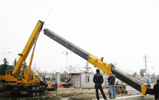 在起吊滿負(fù)荷時(shí),只能收回起重臂(由大幅度變小幅度,由長起重臂變短起重臂),不能伸臂或落臂,否則會(huì)翻車。例如,在某施工工地,有一輛Q51型汽車起重機(jī)在回轉(zhuǎn)半徑為305m時(shí)可以起吊3t。這時(shí)起重機(jī)起吊2.6t并不超負(fù)荷,但是,由于信號(hào)的錯(cuò)誤,指揮者叫司機(jī)起點(diǎn)臂,司機(jī)誤聽為落臂,就造車翻車事故。