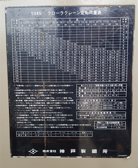 標(biāo)題:神鋼5045 履帶起重機(jī)性能表