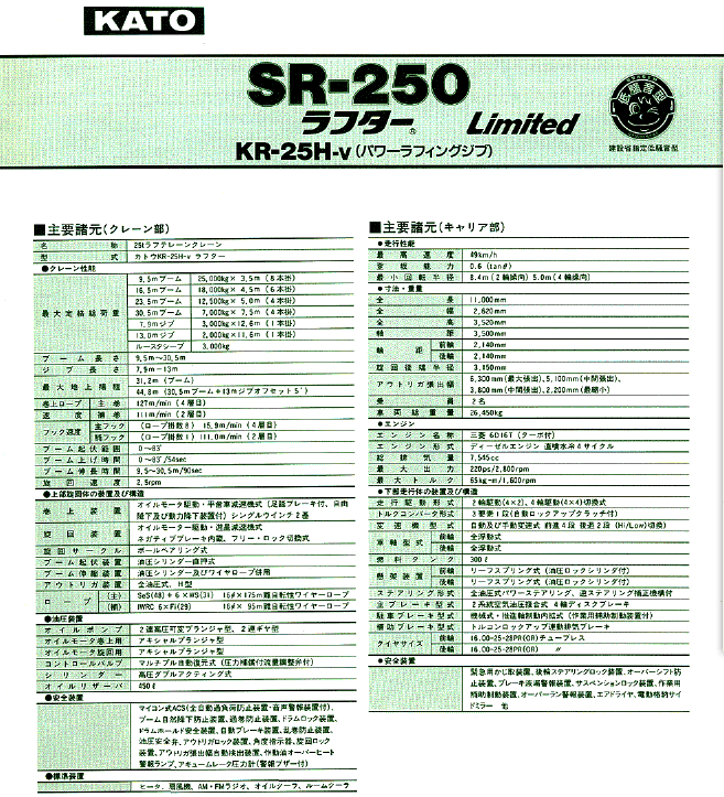 標(biāo)題:KATO 加藤SR250Limited起重機(jī)性能表
