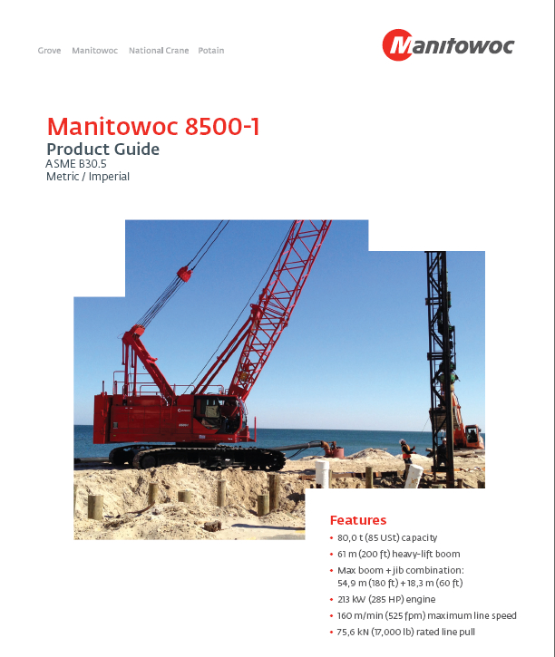 馬尼托瓦克8500-1履帶起重機(jī)性能表