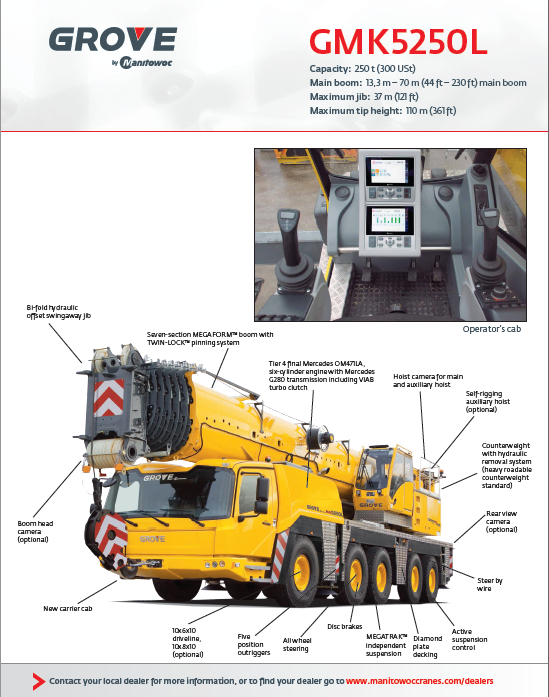 格魯夫GMK5250L-1全地面起重機(jī)性能表