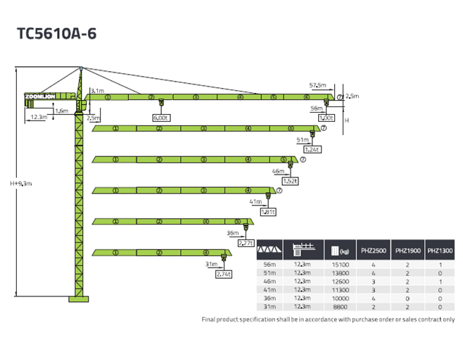 中聯(lián)TC5610A-6起重機(jī)性能表