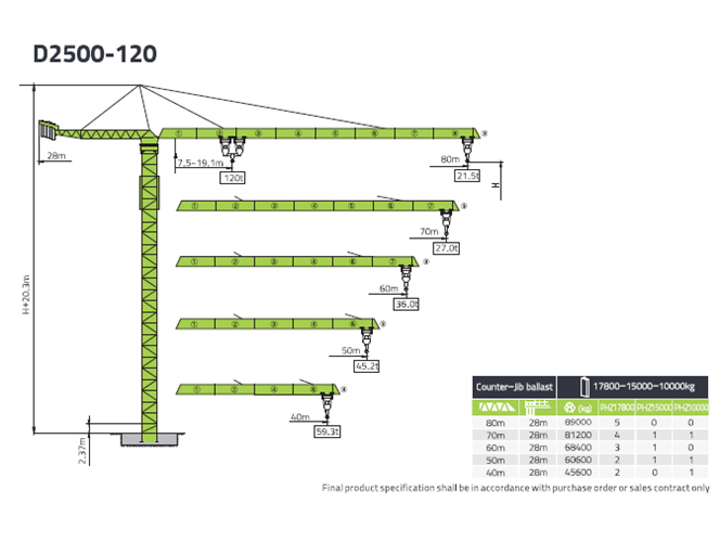 標(biāo)題:中聯(lián)D2500-120起重機性能表
